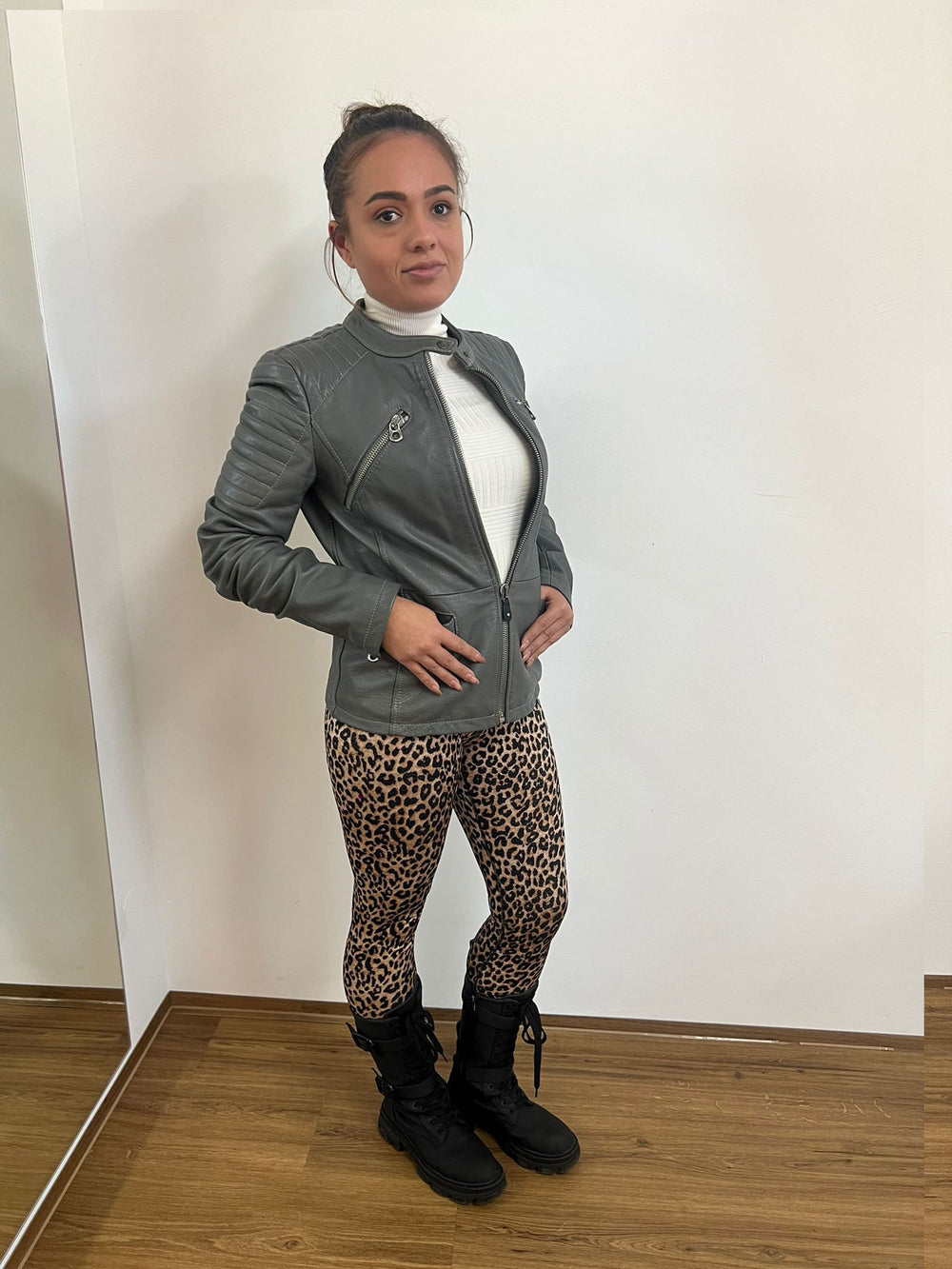 Einzelstück Graue Lederjacke