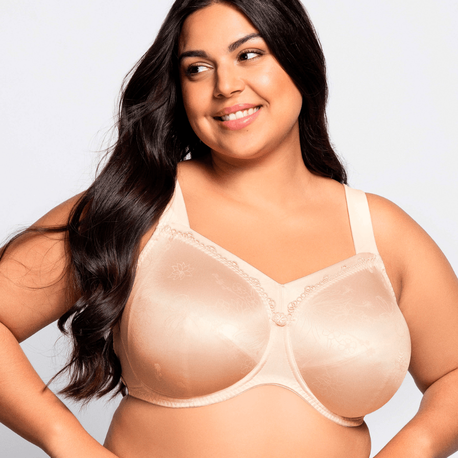 Der äußere BH-Cup ist aus einem gemoldeten Material mit einem schönen Blütenprint, was für eine nahtlose Optik sorgt. Das dreiteilige, genähte Innen-Cup besteht aus festem Simplex-Material, das deine Form schön unterstützt. Im Dekolleté-Bereich sorgt eine zusätzliche Blende für extra Halt.