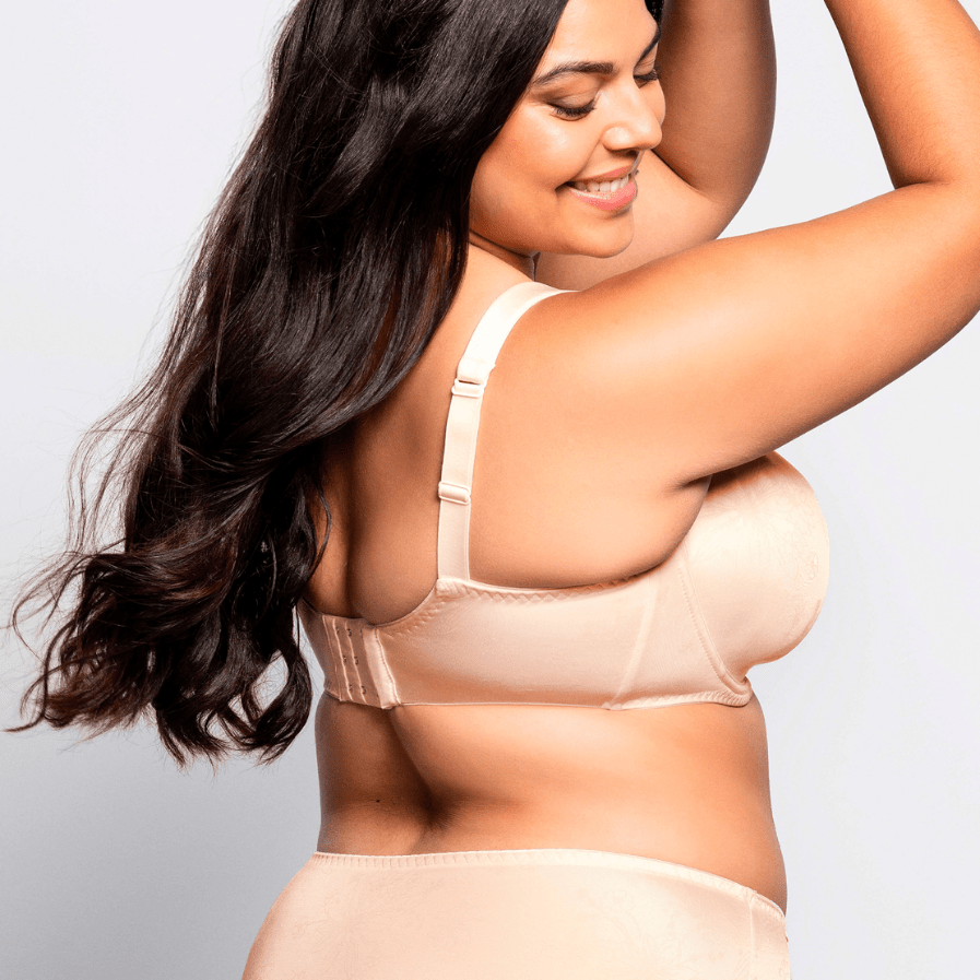 Der Rücken ist funktionell verarbeitet, damit du den BH bequem und sicher tragen kannst. Der Rückenverschluss ist weich gepolstert und wird bei größeren Größen breiter, um noch besseren Halt zu bieten.