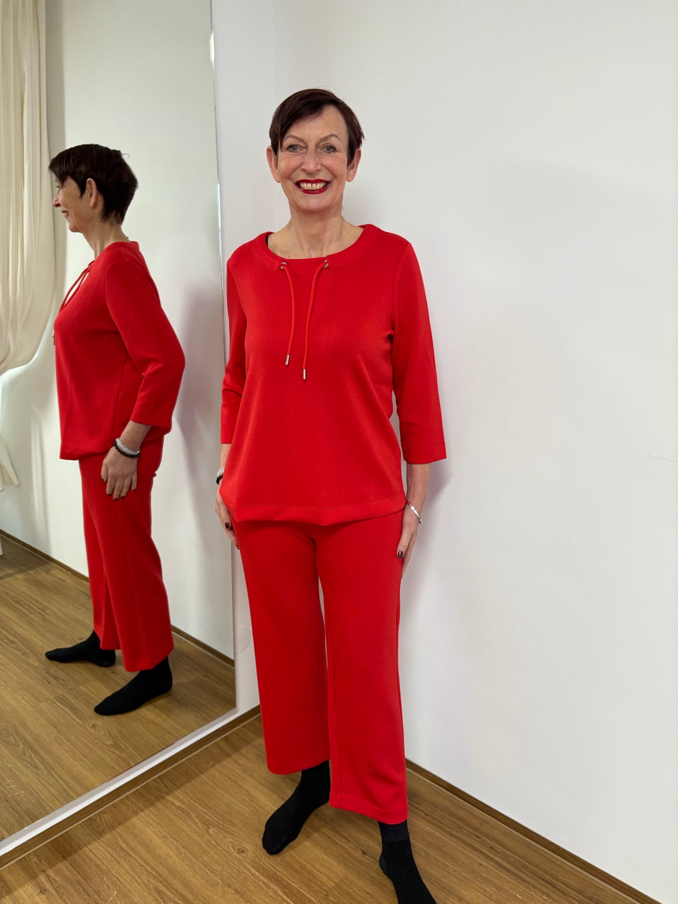 Kombiniere die Hose mit dem passenden roten Sweatshirt für einen harmonischen Look, der sowohl stilvoll als auch bequem ist. Mit diesem tollen Set bist Du immer bestens angezogen.