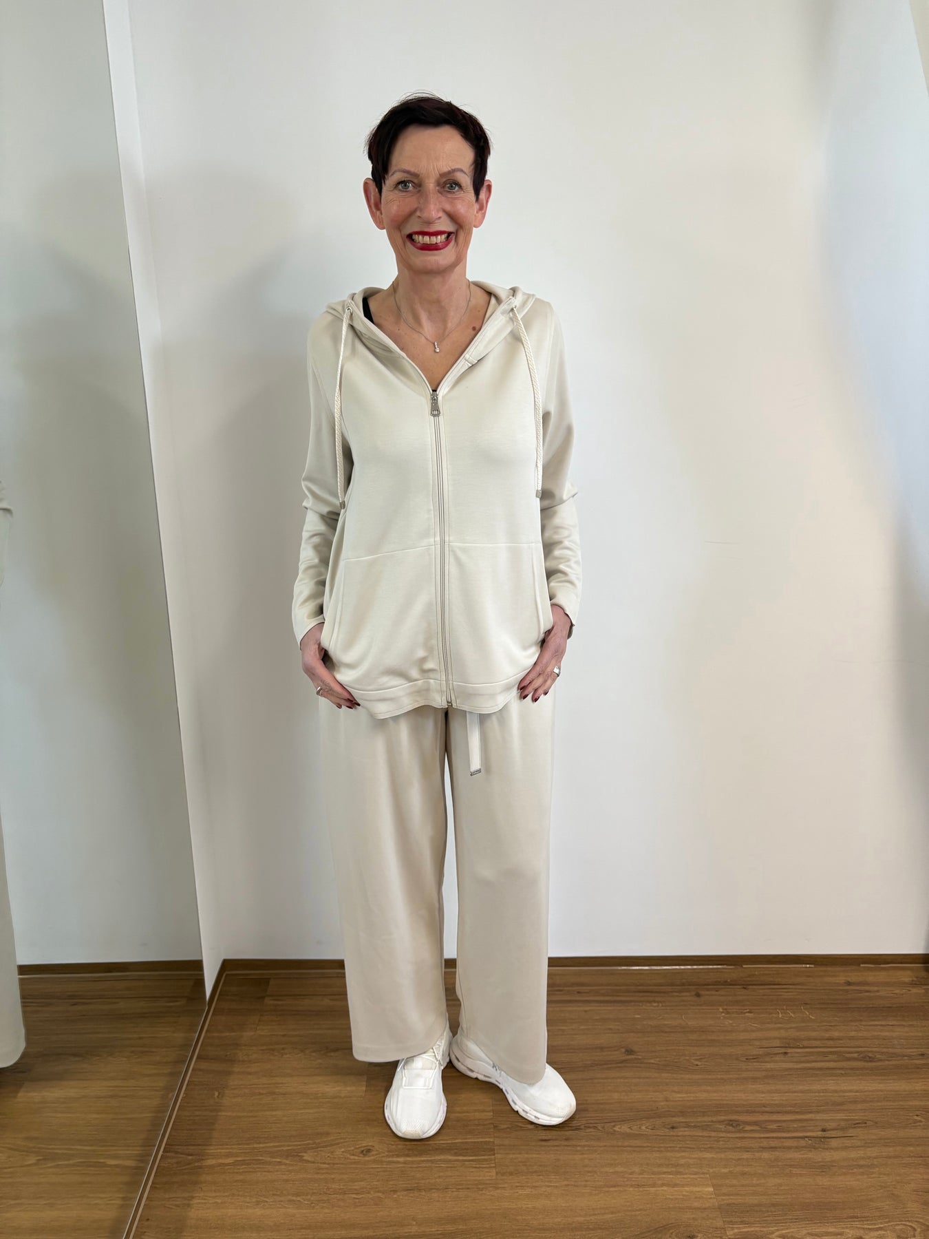 Entdecke die perfekte Ergänzung für dein Outfit mit unserer tollen neuen Hose! Sie ist nicht nur super gemütlich, sondern auch in einem trendigen Beige-Ton gehalten. Der praktische Stoffgürtel sorgt für einen angenehmen Sitz und maximalen Komfort. Kombiniere die Hose mit der passenden Jacke aus unserem Shop und kreiere einen lässigen Look, der ideal für entspannte Tage ist. Gönn dir dieses neue Must-have und fühl dich rundum wohl! Die Wunderhose kann natürlich unter dieses lässigen Hose getragen werden.