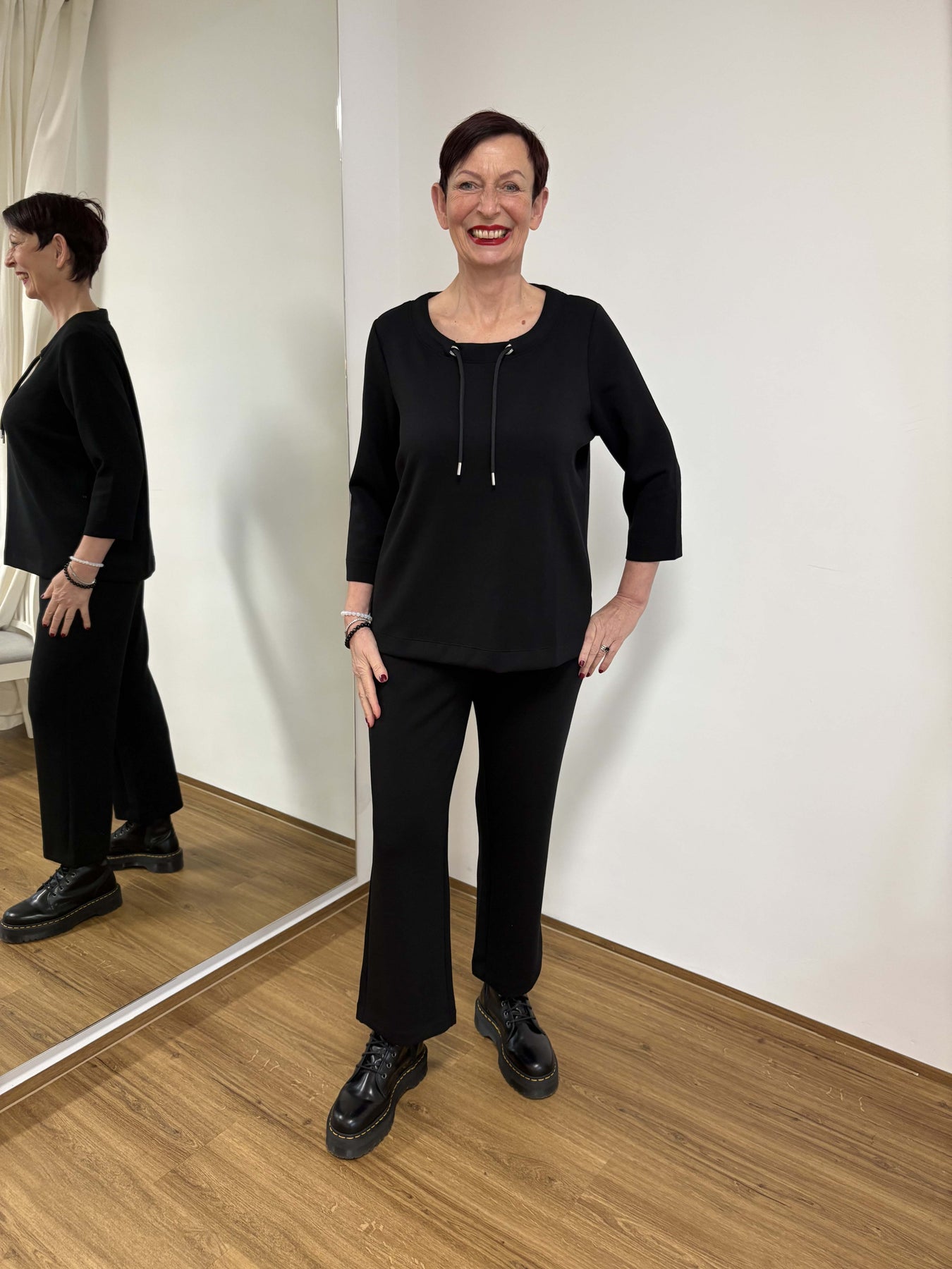 Das Material fühlt sich auf der Haut an, wie Sahne. Es ist ein Vergnügen diese Sweatshirt zu tragen. Es passt perfekt zur Wunderhose oder zu der schwarzen Culotte.