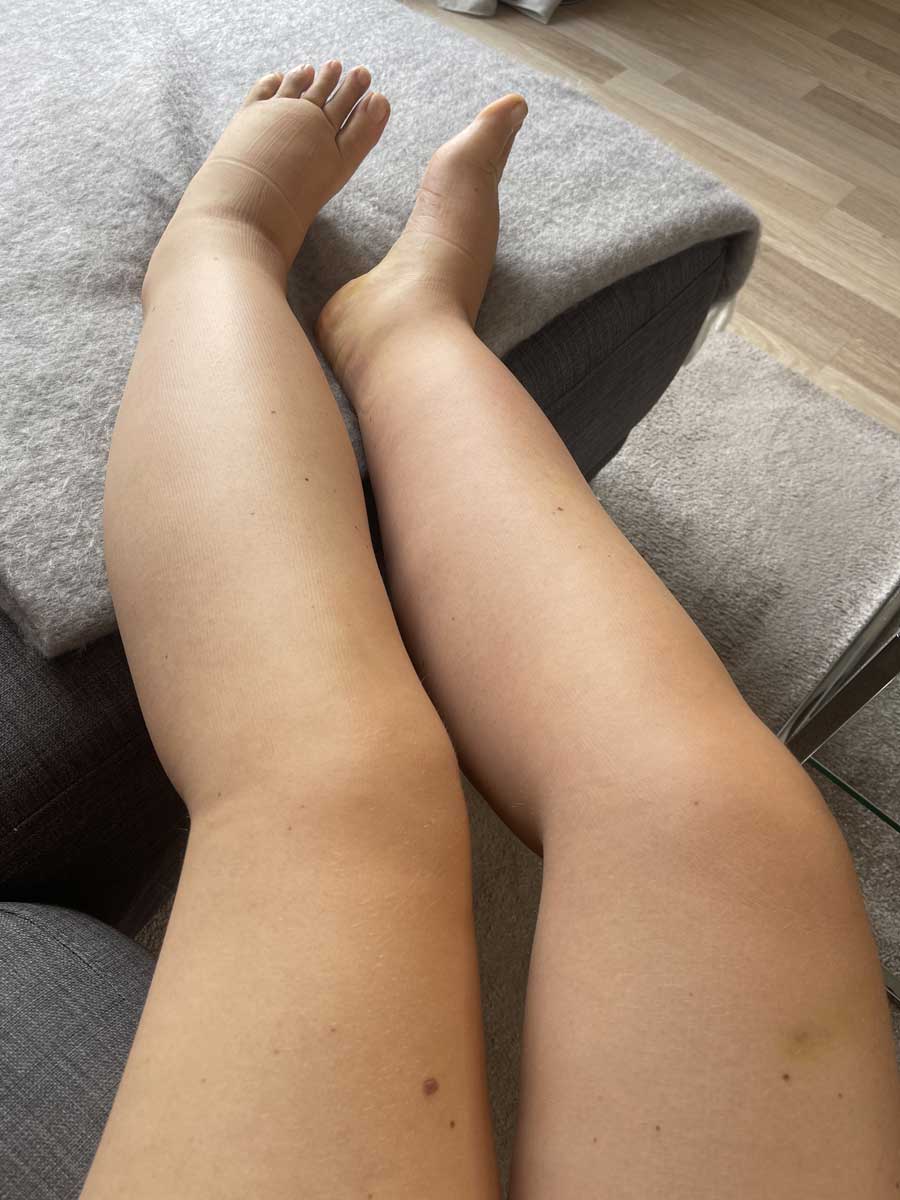 Du brauchst bis zu einer Stunde zum Anziehen und die Kompression kann drücken und kneifen